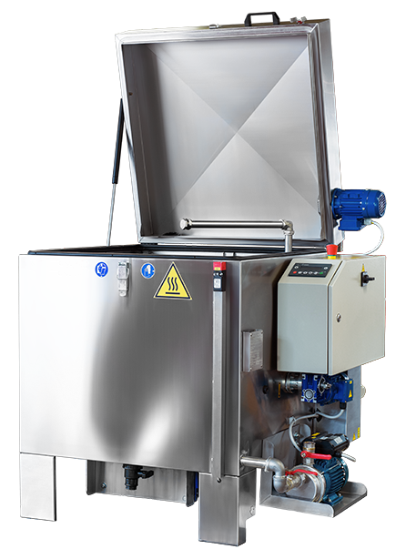 Wir empfehlen das Modell mit einer 6-bar-Druckpumpe, die einen Durchfluss des chemischen Mittels von 200 l / min ermöglicht, einem Edelstahlkorb für Kleinteile, einem Rasterwalzenhalter und einer Ladungs- und Ausgabepumpe.